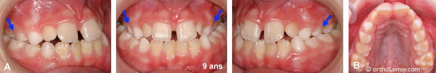 (B) L’examen de la dentition révèle cependant un décalage très important pour son âge.