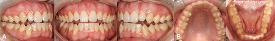 - (B) Nous élaborons un plan de traitement qui vise à obtenir les meilleurs résultats esthétiques et fonctionnels possibles tout en tentant de répondre aux attentes des patients. Ces objectifs de traitement ne sont jamais la “perfection” mais constituent l’ “idéal” pour un patient spécifique et cet idéal variera d’un patient à l’autre selon les caractéristiques de sa dentition et sa malocclusion et des moyens que le patient est prêt à prendre pour corriger son problème.