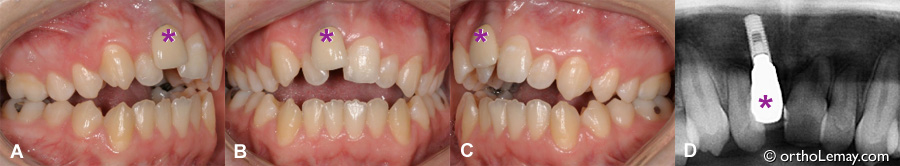 Un tel implant ne peut être déplacé en orthodontie et il devra être retiré et remplacé ultérieurement une fois les corrections orthodontiques terminées.