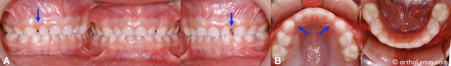 (B) Ces espaces sont présents depuis le dentition temporaire et sont stables. Ils ne se refermeront pas.