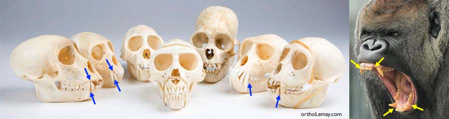 Nos ancêtres, les grands singes et des primates modernes ont toujours cet espace primate destiné à accommoder leurs grosses et longues canines.