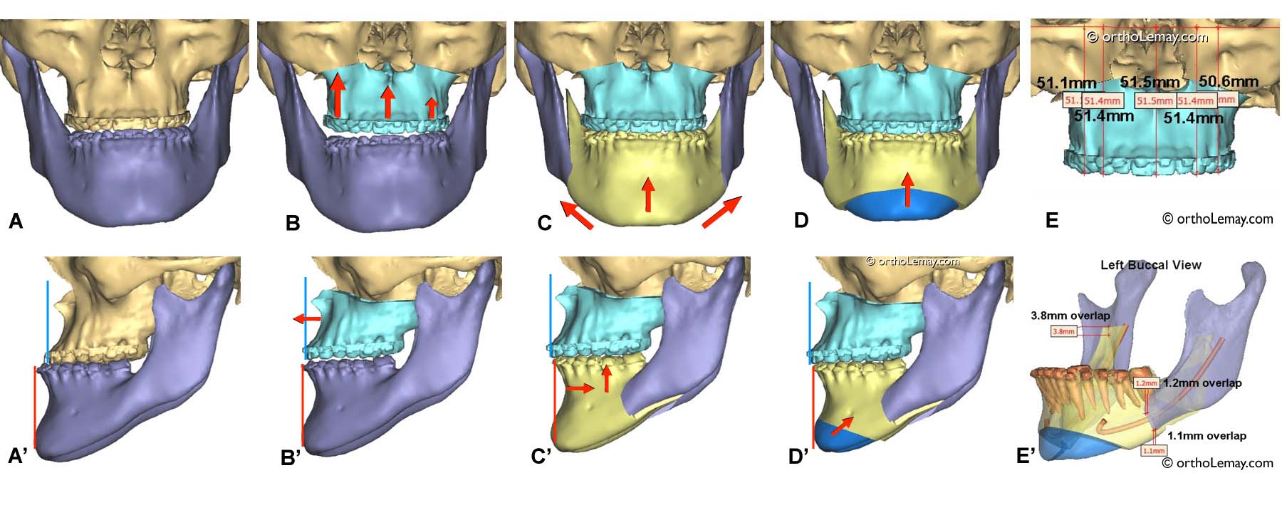Chirurgie orthognathique bimaxillaire pour corriger une prognathie mandibulaire et déficience maxillaire.