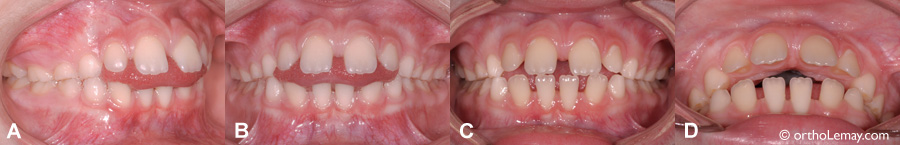 (A) Avant les corrections; présence d’un espace de 3,5 mm entre les centrales supérieures.