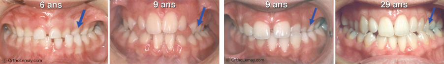 Exemple démontrant que les occlusions croisées (flèches) ne “s’auto-corrigent” pas avec le temps, les années et la croissance.