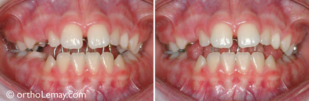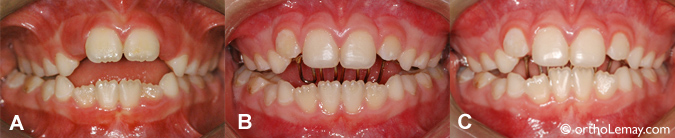 (C) Après seulement 2 mois avec l’appareil, la fermeture de la béance est déjà évidente.