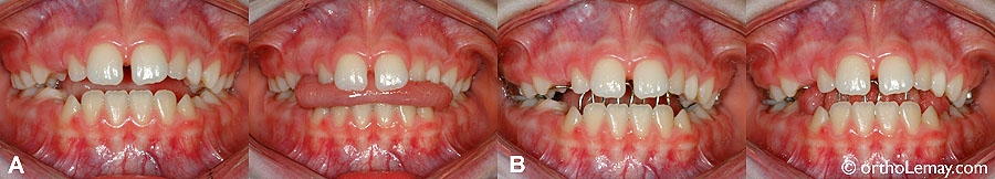 Si les dents antérieures ne se touchent pas, la langue se place entre elles pendant la fonction et parfois au repos.